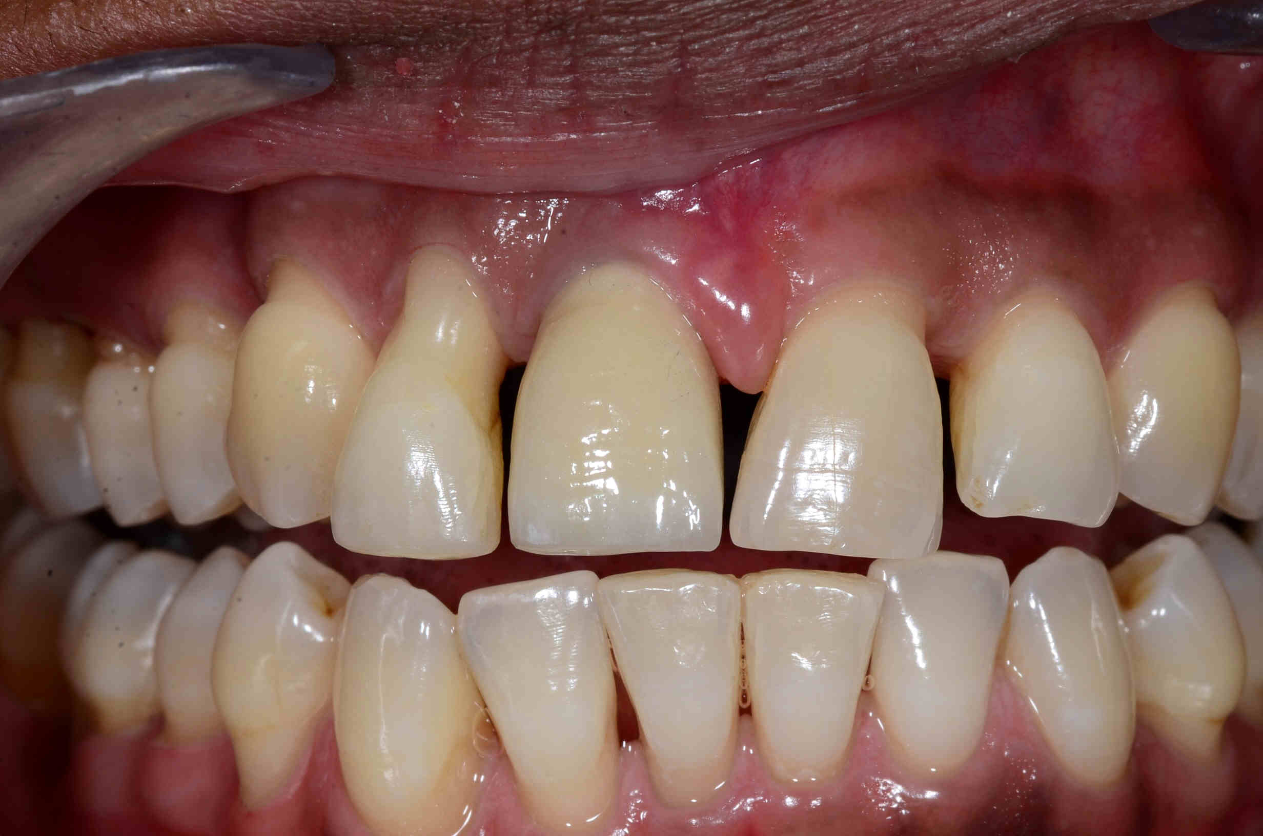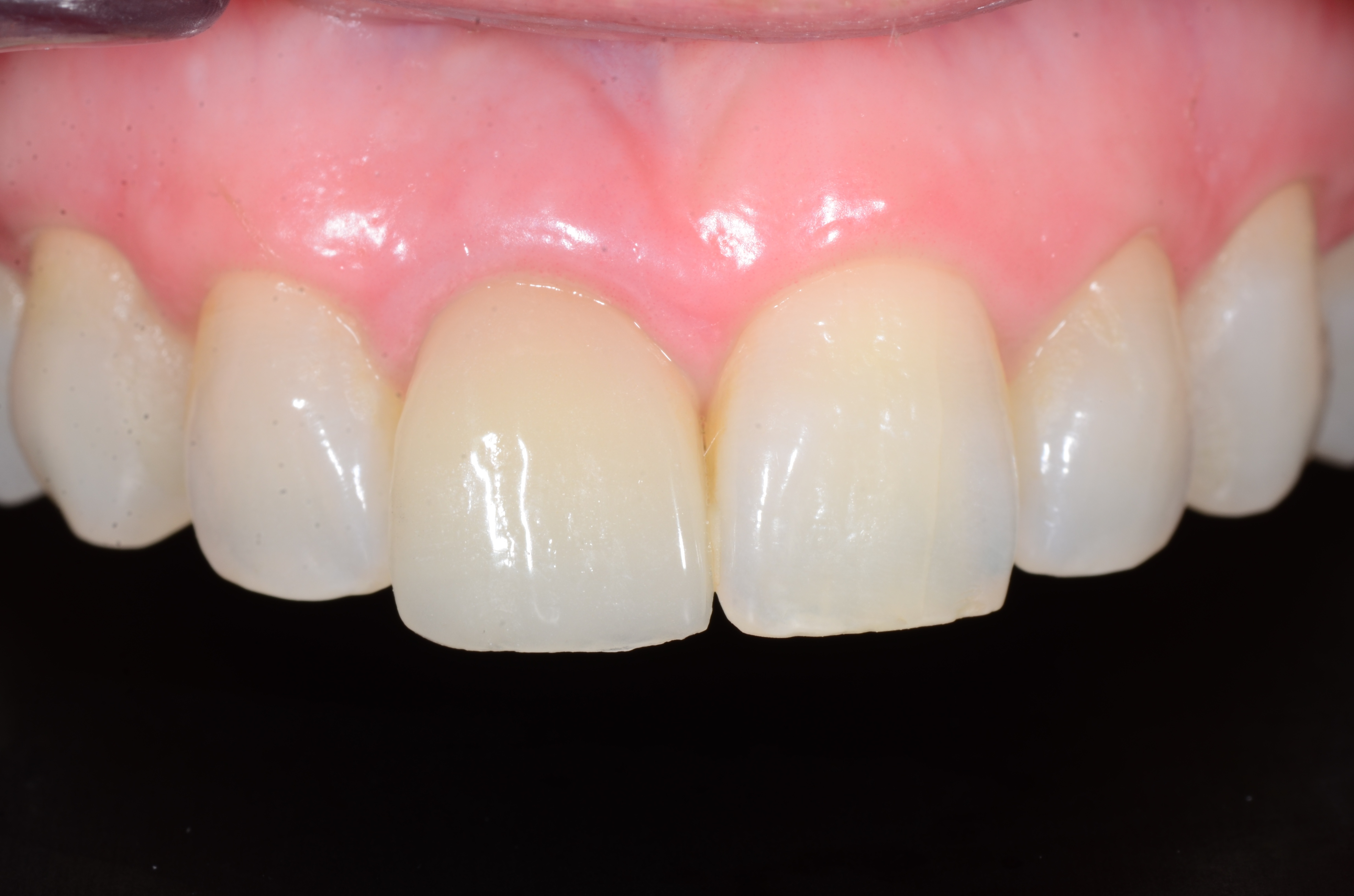 The pictures in this show two entirely different outcomes; case one (below) is a conventional case in a very difficult perio patient with considerable vertical bone loss using standard lab ceramics which required an anterior GBR procedure.